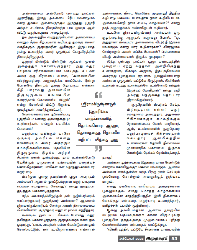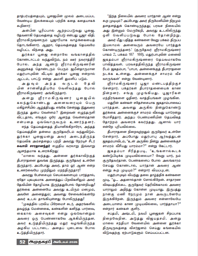 An article by Swami Vimurtananda titled “Become the Instrument of the Goddess; the Goddess Will Become Your Armour!” on Durga Puja has been published in the Amudasurabhi Deepavali Special Issue. Do read it!