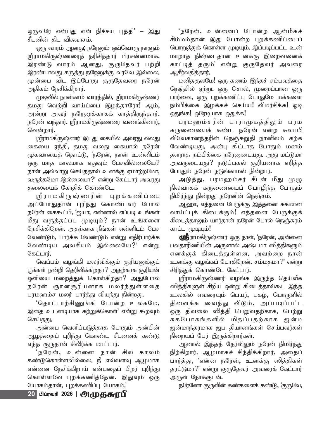 "நரேன், உன்னை நான் சில காலம் கண்டுகொள்ளவில்லை. நீ எவ்வளவு ஆழமாக என்னை நேசிக்கிறாய் என்பதையும் பிறர் புரிந்து கொள்ளவே புறக்கணித்தேன். இதுவும் ஒரு யோகம்தான், புறக்கணிப்பு யோகம்."