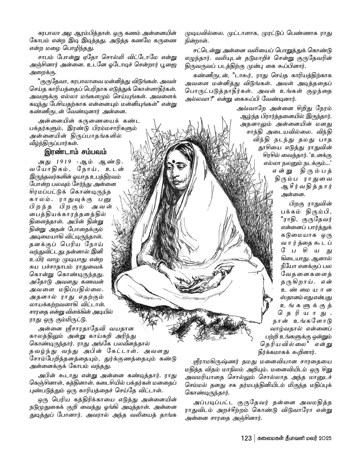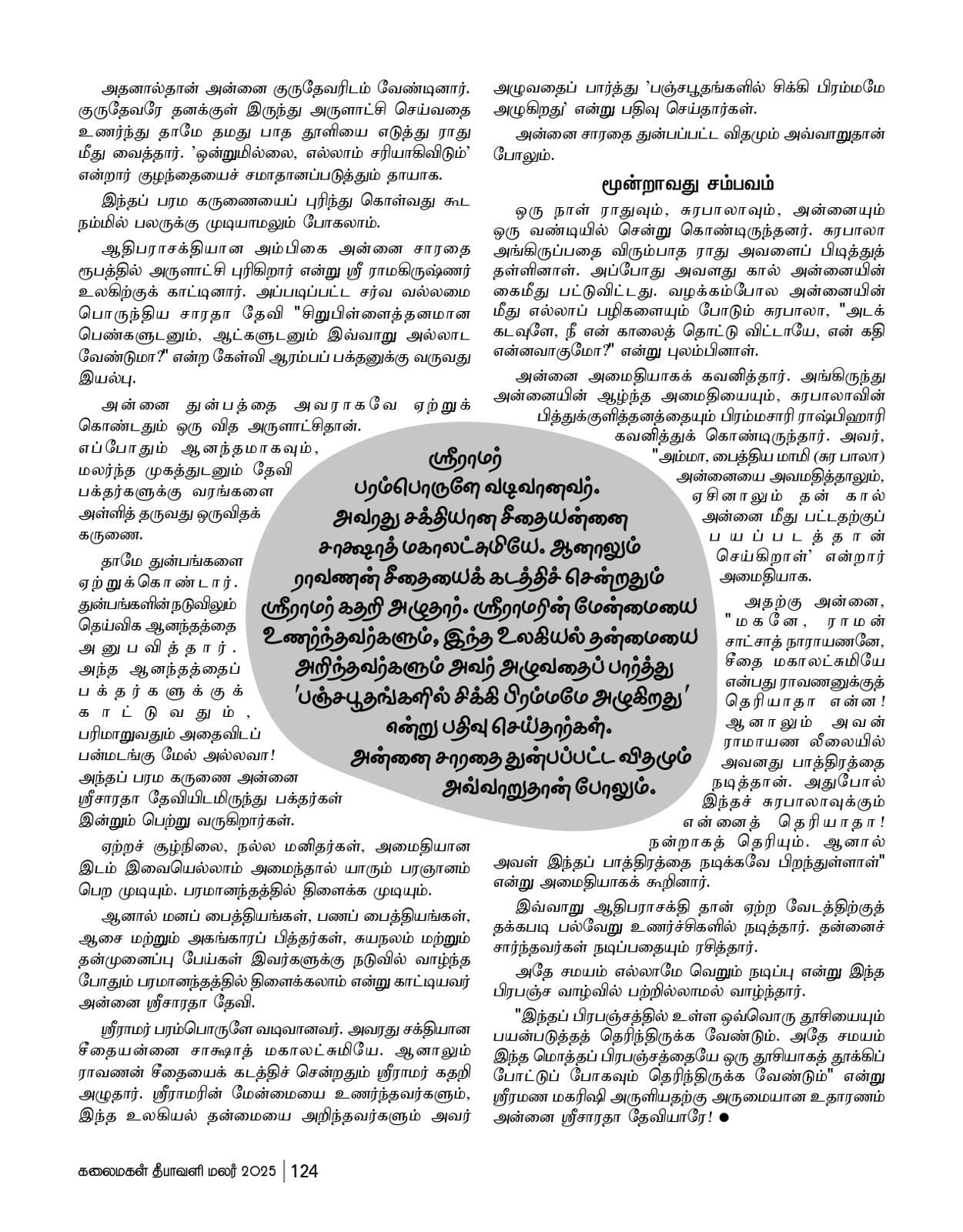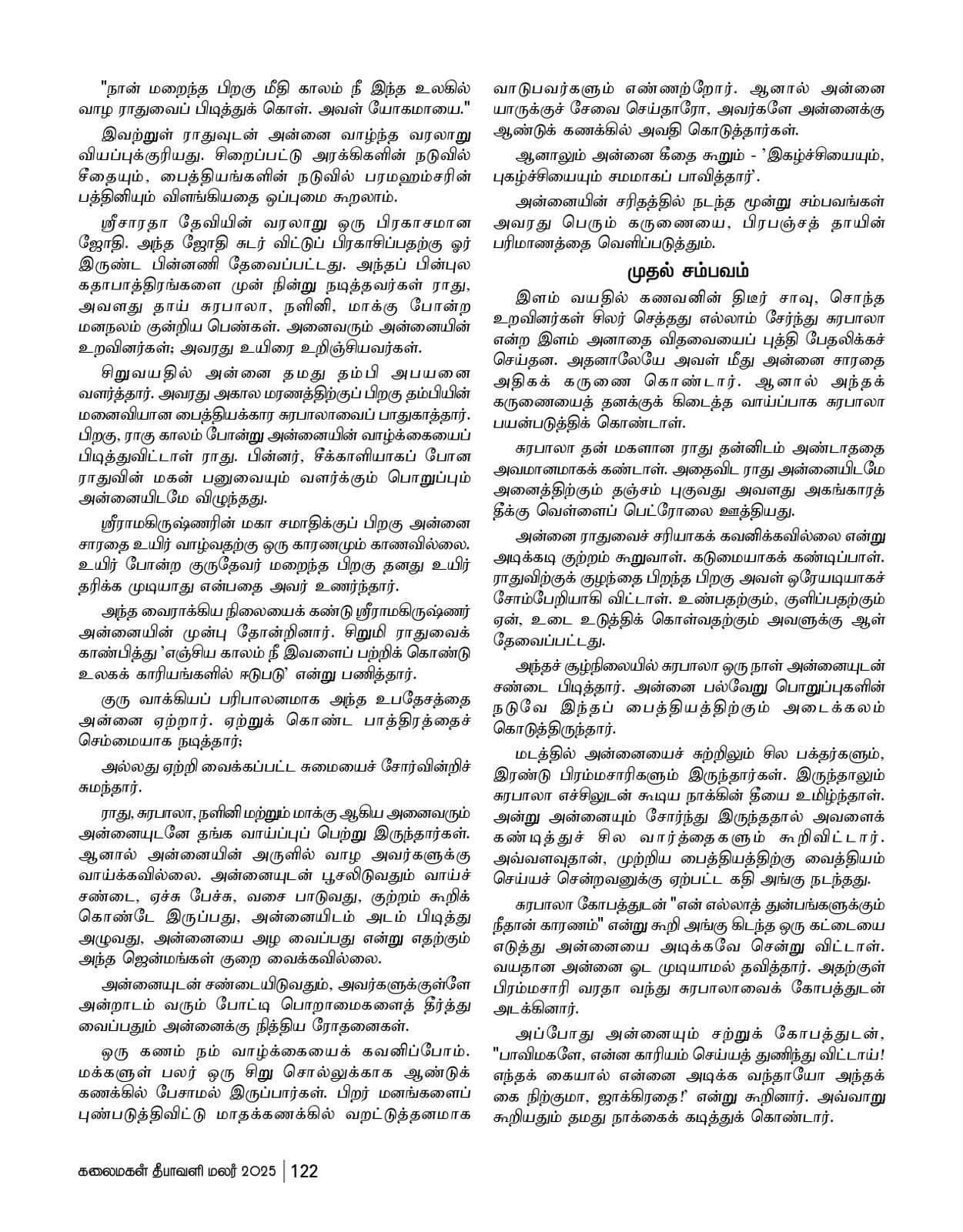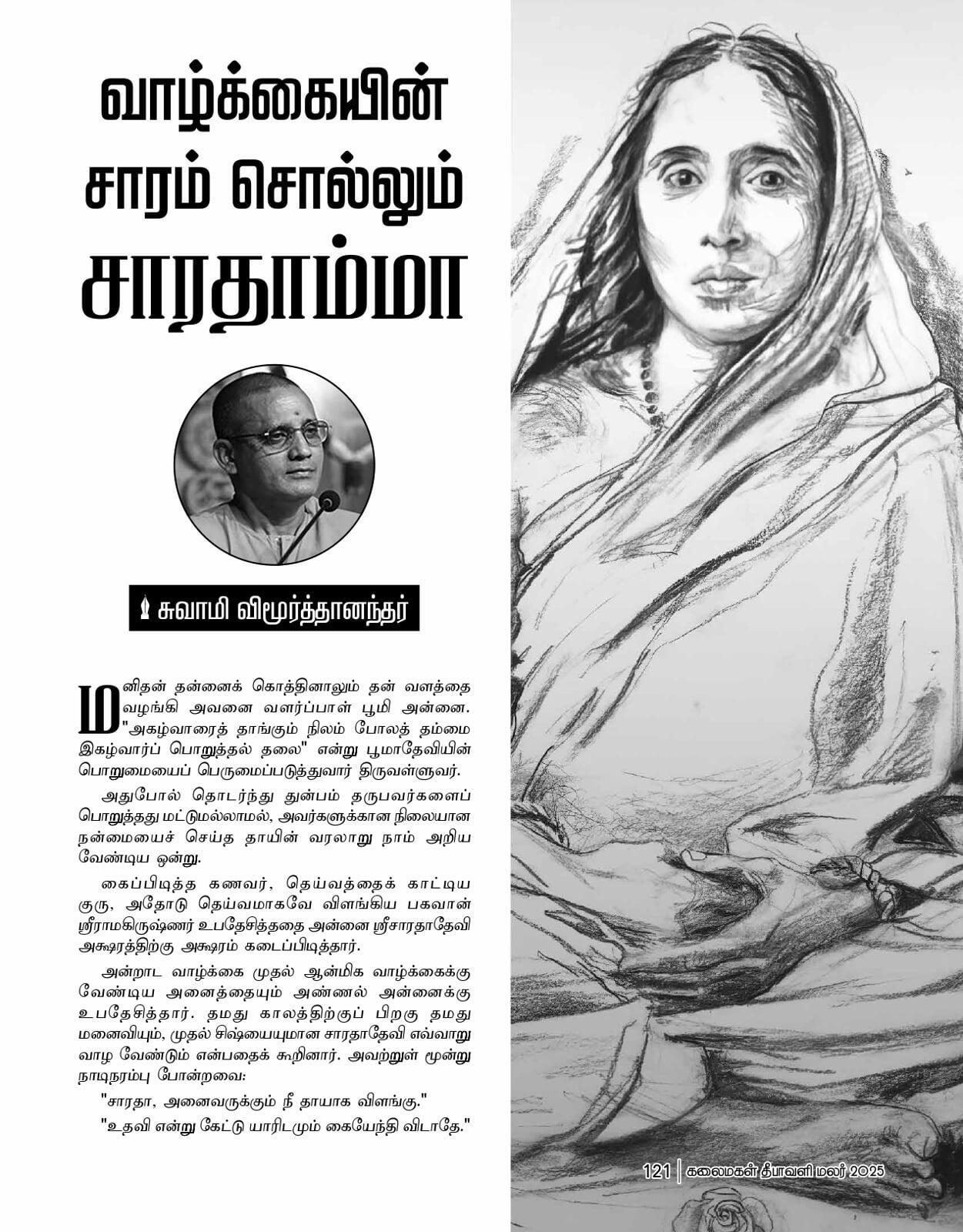 In the Kalaimagal magazine’s Deepavali special issue, an article by Swami Vimurtananda titled “Ma Sarada who reveals the Essence of Life!” has been published. Do read it!