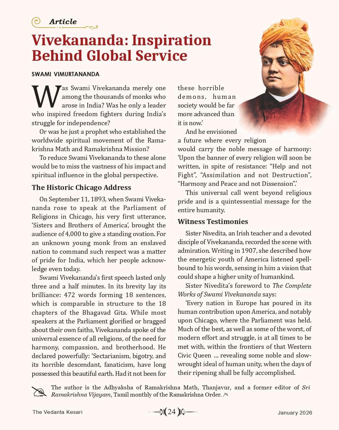 (Article appeared in The Vedanda Kesari, January 2026 by Swami Vimurtananda)