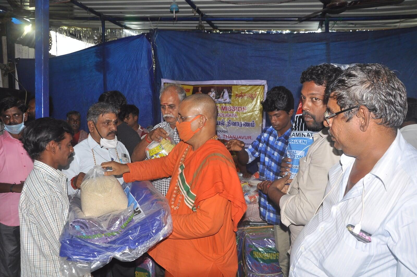இந்த நோக்கத்திற்காக ஸ்ரீராமகிருஷ்ண மடம், தஞ்சாவூர் மேற்கொண்டுள்ள நாட்டுப்புற மற்றும் கிராமிய கலைஞர்களுக்கு நிவாரணம் வழங்கும் சேவையை 8.5.21, சனிக்கிழமையன்று தஞ்சாவூர் மாவட்ட கலெக்டர் திரு. எம். கோவிந்த ராவ் அவர்கள் தொடங்கி வைத்தார்.